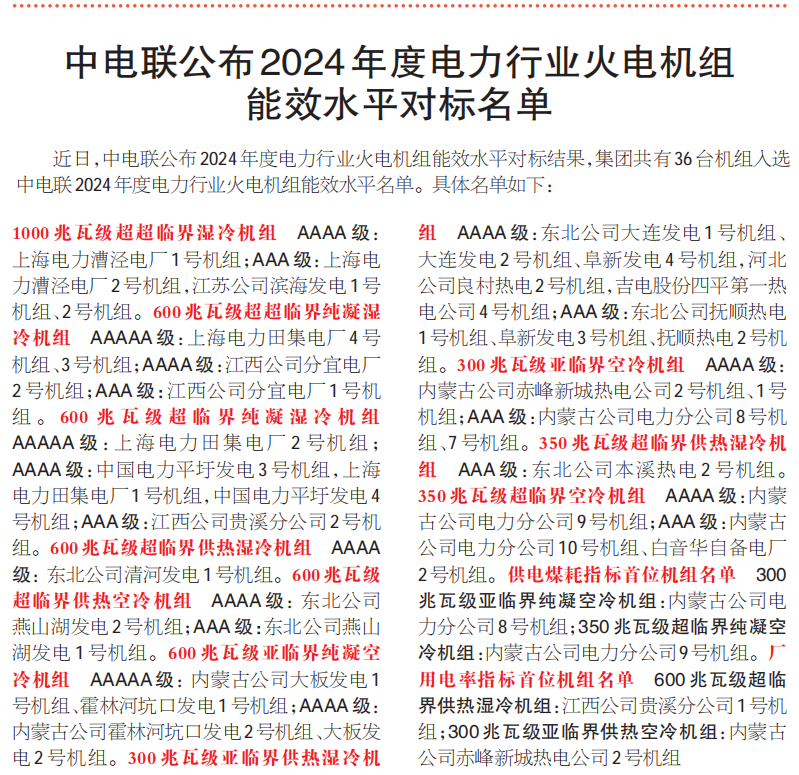 国家电投报第314期:中电联公布2024年度电力行业火电机组能效水平对标名单