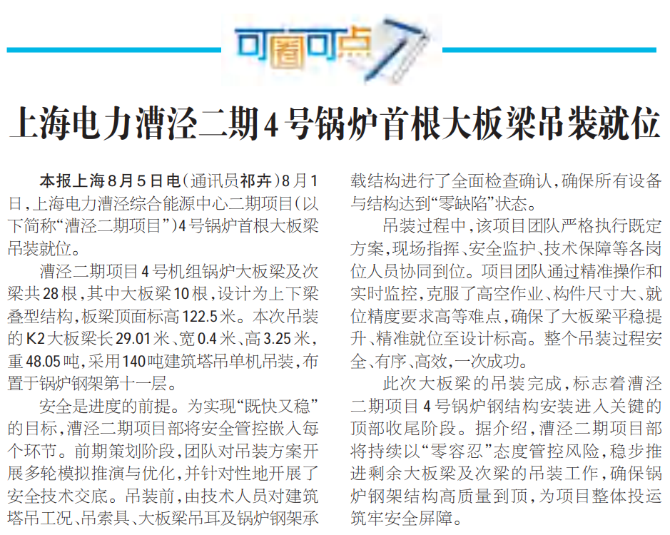 国家电投报第316期:上海电力漕泾二期4号锅炉首根大板梁吊装就位